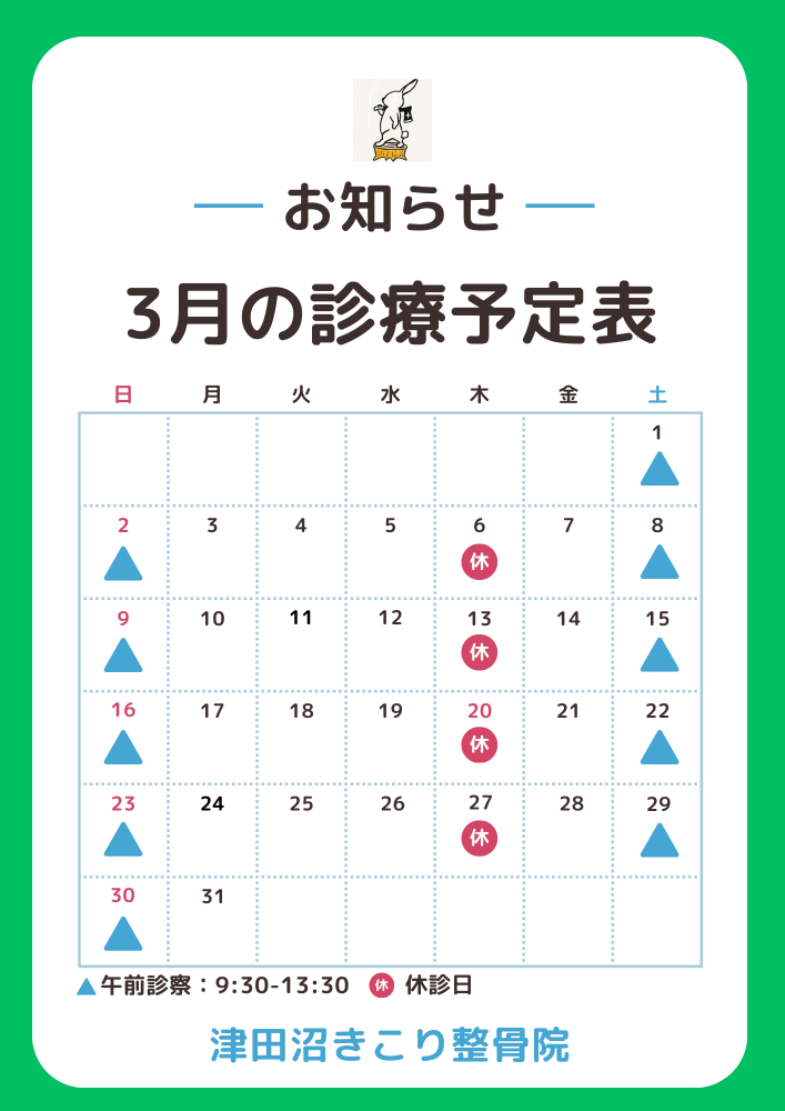 3月診療予定 2025.02.25 Post Share Hatena LINE feedly Pin it note この記事のタイトルとURLをコピーする 基本、通常通りの診療となります。 変更があった場合はご連絡させて頂きます。 Post Share Hatena LINE feedly Pin it note この記事のタイトルとURLをコピーする お正月休みのお知らせ 前の記事 4月診療予定 次の記事