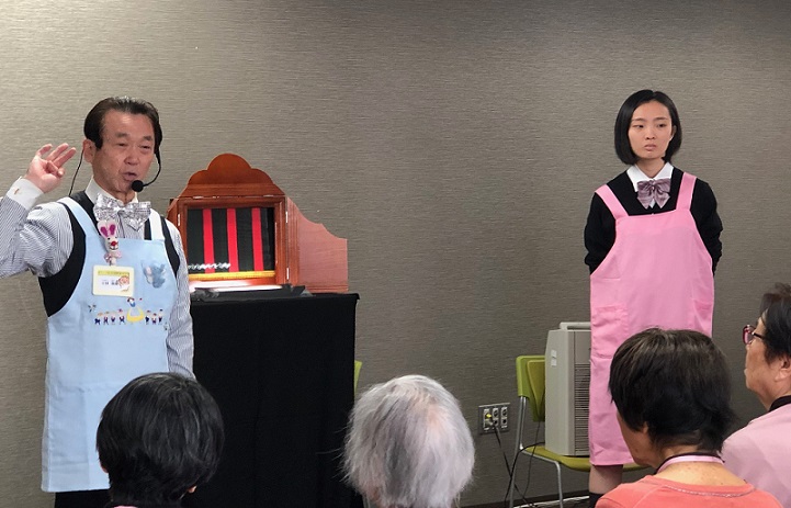 2週間空いてしまう為、体操にも熱がはいります!!あれ、今日はバランス体操はしないの?とトレーナーに突っ込みが出来るほど、皆さん熟知していらっしゃいますものね。特に念入りに身体をしっかりと動かし、第二部ではたまプラーザにあるクラーク国際高校の先生と生徒さんが来てくれ、大人の紙芝居をご披露いただきました。