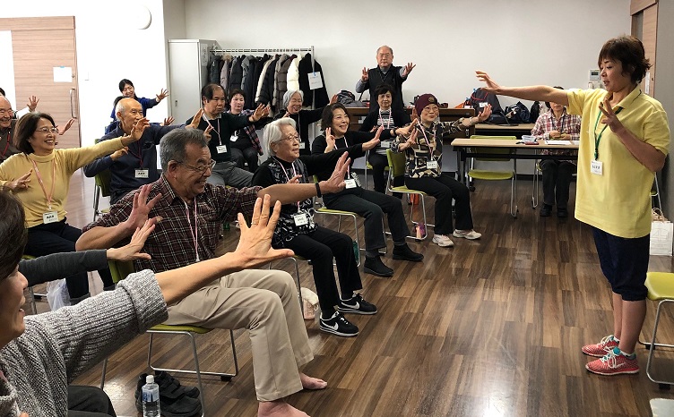 いつもの転倒予防のトレーニングの前に今日は、脳トレを取り入れた体と頭の体操から、