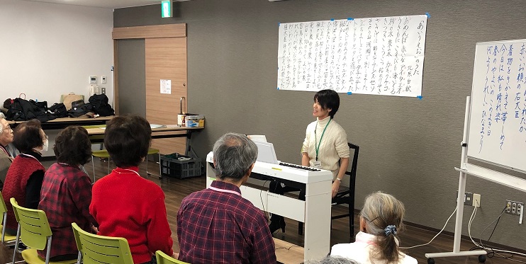 さて、歌の時間では、3月も近いこともあり、「うれしいひなまつり」と「虹と雪のバラード」を歌いました。