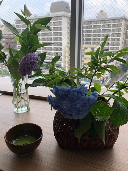 花を愛でる、器を愛でる・・・そしてひんやりした美味しい黒糖味の和菓子、心を籠めてたてていただいた薄茶をじっくりと味わいました。お茶の心は難しくてわかりませんが、でも、なかなか味わう機会のないお抹茶を素敵な器で入れて頂くのは皆さんお話もはずみます。