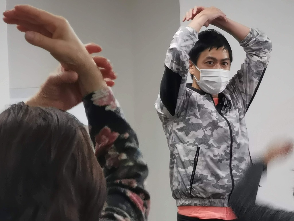 足腰を鍛えたり、肩甲骨を動かしたり、深い呼吸をしたり、音楽に合わせて体操したり。