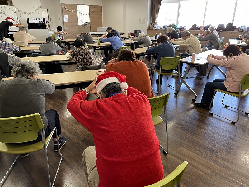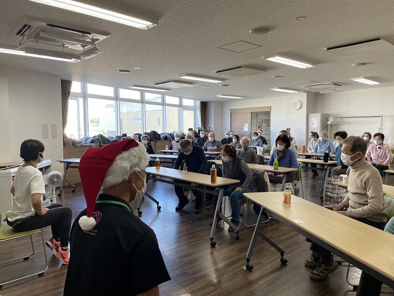 そして次の日はクリスマスイブ。寒さも本格的になり、このなかでコロナを吹き飛ばし、気分も上げていくにはこの会でじんわりと体操を行って年末年始を迎えるしかありません。