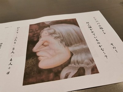 その中の一つ。「この一枚の写真の中に、何人描かれていますか?」という問題です。写真ではわかりづらいかもしれませんが、角度を変えると10人隠れていました。
