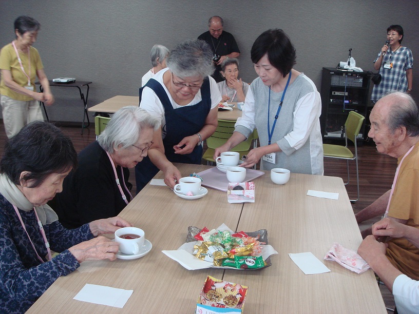 今回は同じケアプラザ内で紅茶の淹れ方講習会の参加者の方が、発表提供の場として冷たいライム入り紅茶をふるまっていただきました。
