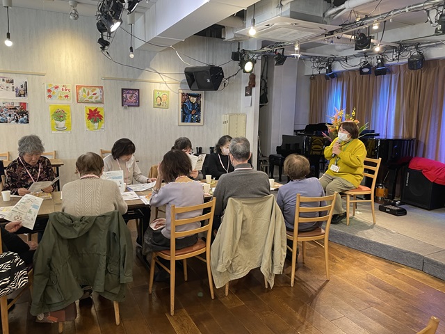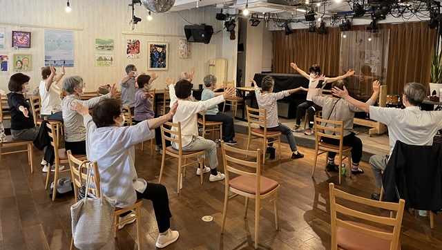 1時間半の時間内で体操を行ったり歌を歌ったりをしつつ、お茶時間を楽しむのが中心となります。こじんまりとした集まりですので、そこで出会った同世代の方々と話を楽しんでいただくことが目的となります。場所も、ケアプラザを離れ、3丁目カフェ(美しが丘1-10-1)での集まりとなります。