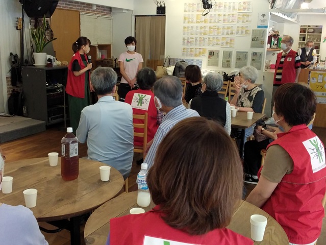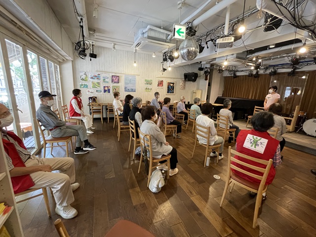 体操中心の転倒予防教室とは違い、1時間近くはお茶やお菓子を頂きながら、出かけられる場所、周りを気にせず話せる場所を提供しています。カフェはその時間は貸し切りで行うため、安心しておこし下さい。
