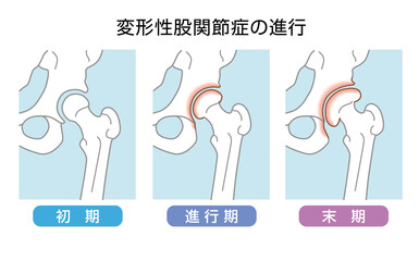 - 症状:激しい痛みがあり、歩行が困難になり、杖や他の補助具が必要になることがあります。関節の変形が進行し、股関節がほとんど動かなくなることもあります。