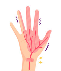 手根管症候群(しゅこんかんしょうこうぐん)は、手首にある「手根管」と呼ばれるトンネル状態の部分が圧迫されることによって起こる神経障害です。主な神経が通っており、これが圧迫されると、手や指(特に親指、人差し指、中指)にしびれ、痛み、脱力感などの症状が現れます。