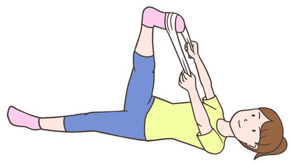 - ハムストリングストレッチ:仰向けに寝て、片足をゆっくりと伸ばし、タオルなどを使って引き寄せる。