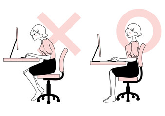 • 長時間の座位や立位では、背筋を伸ばし、腰に無理な負荷がかからない姿勢を心がけます。