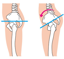 - 前傾: 骨盤が前に傾く(前傾)と、腰が反りやすくなり、腰椎に過度な負担がかかります。この状態は、反り腰(腰椎前弯症)を引き起こし、腰痛の原因となります。また、腹部が前に突き出るように見えることがあり、姿勢が悪く見えがちです。